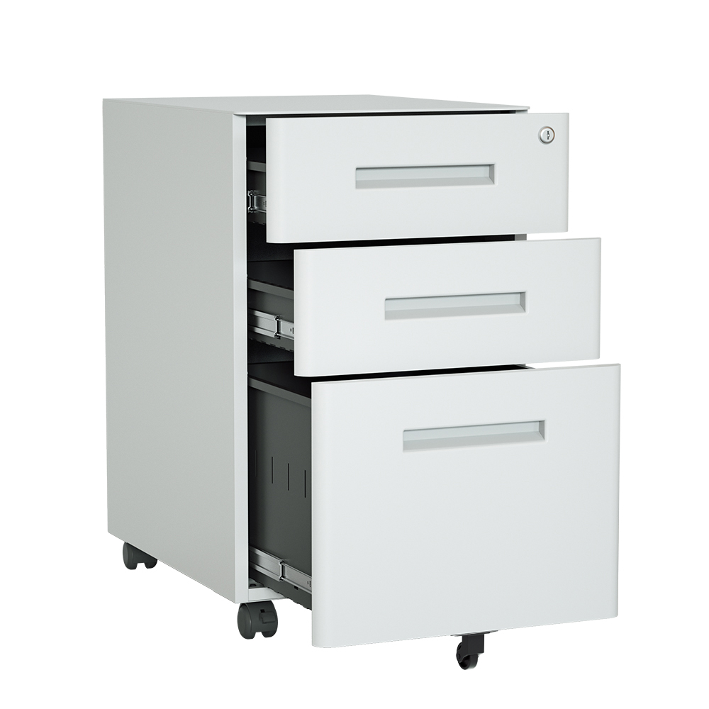 This office mobile file cabinet has cambered corner design, which can better integrate into the office surroundings, and it conductive to a comfortable working feeling. Extended handle for easier use. The powder coating on the surface is wear-resistant and durable. This is a reliable and necessary office furniture.